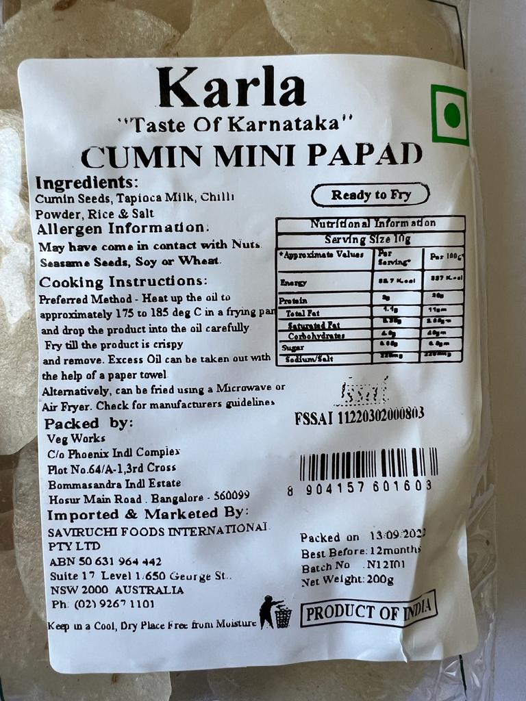 Cumin Mini Papad | Aromatic and Crunchy Snack Delight | Karla | Saviruchi Foods quantity