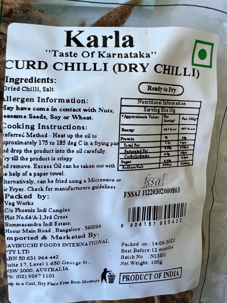 Salted Dry Chilli (Dry Chilli) | Karla