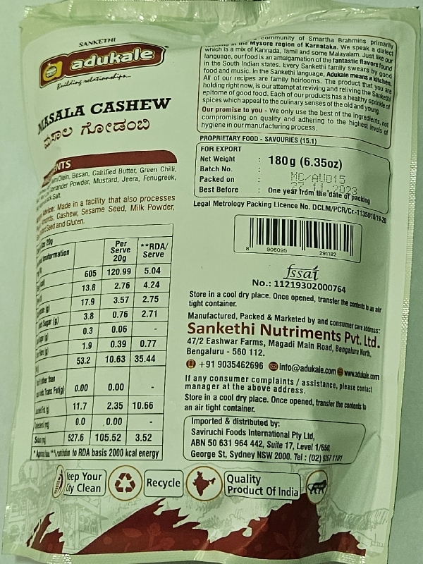 Handpicked, whole cashews tossed in spices, Masala Cashew is a healthy and tasty snack. Perfect for munching in between meals or to make tea time more flavoursome, Masala Cashews are popular all year long. With this spicy, salty and crunchy, we are certain that you will not be able to stop at one!