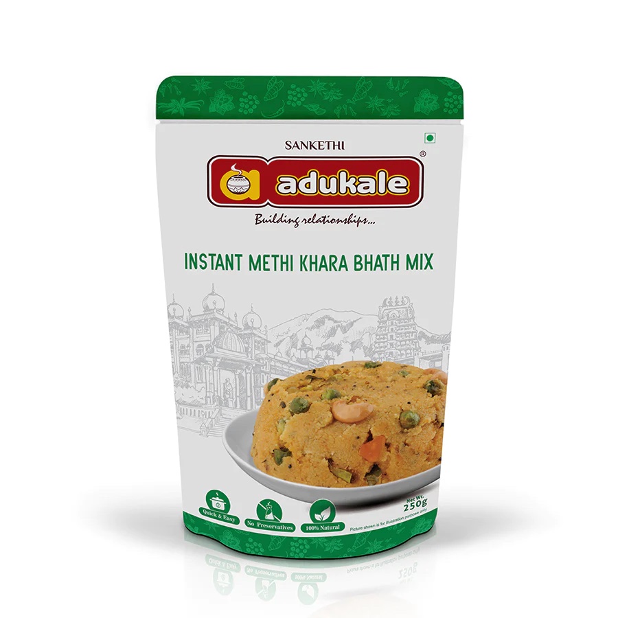 - Slowly add 1 measure of Adukale Khara Bhath mix. Keep stirring the mixture until it becomes soft and uniformly thick
