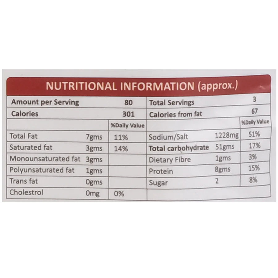 Rava, Vegetable Cooking Oil, Cashew Nuts, Mustard, Bengal Gram Dal, Black Gram Dal, Turmeric, Lemon Powder, Green Chillies, Curry Leaves, Ginger, Sugar, and Salt