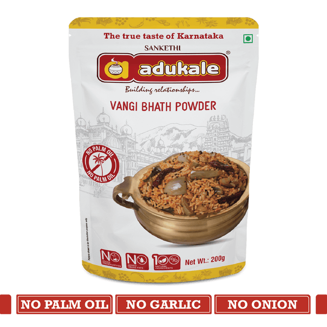 - To the cooked vegetables add 4-5 tsp of Adukale Vangi Bhath Powder. Add Salt, Tamarind Juice to your taste and stir it on a low flame for about 3 minutes